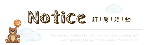 ●  為維護住宿品質,請每位遊客保持輕聲細語,相互尊重住宿空間上的安寧。